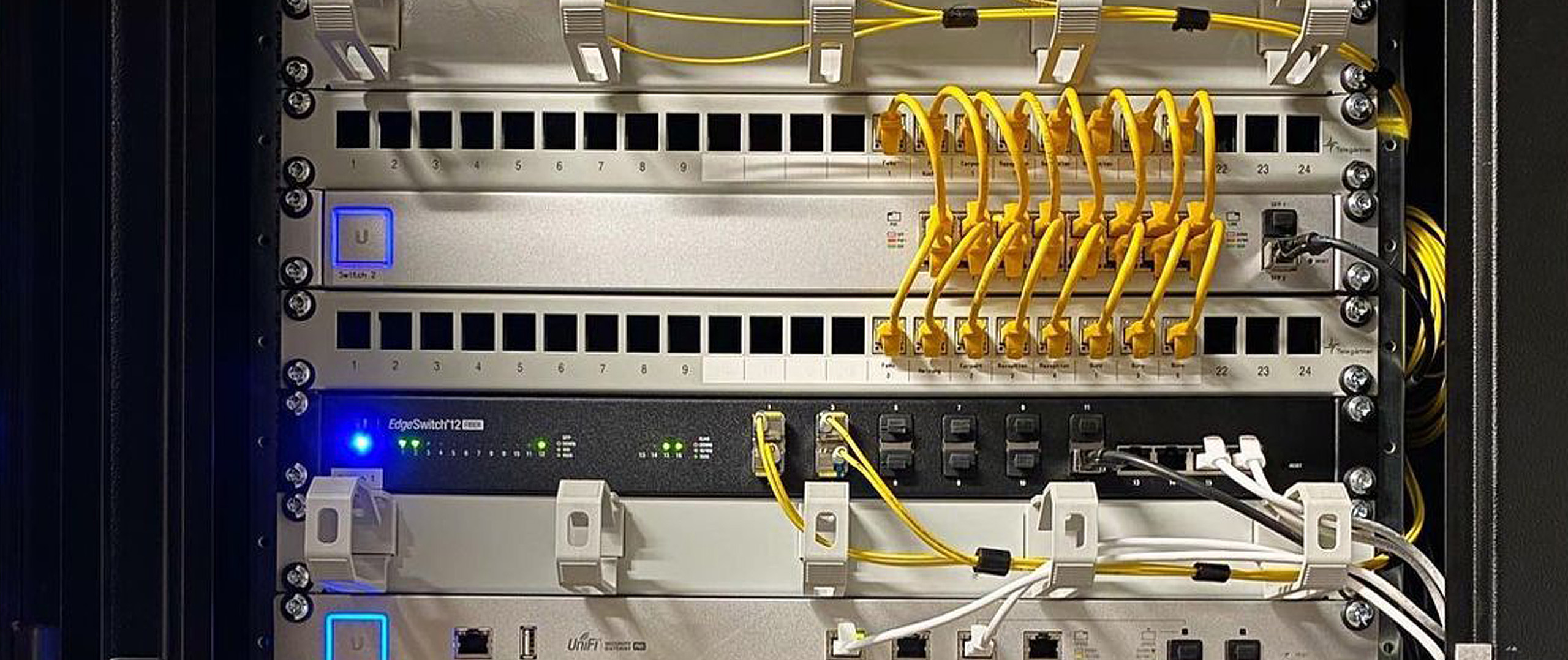 Im Rezeptionsgebäude wurde ein Netzwerkschrank installiert, der die Switches im Gelände und auch die Rezeption mit Netzwerk versorgt. Der Netzwerkschrank bietet ausreichend freien Platz, sodass auch der Server für die Verwaltungssoftware demnächst dort einziehen kann.